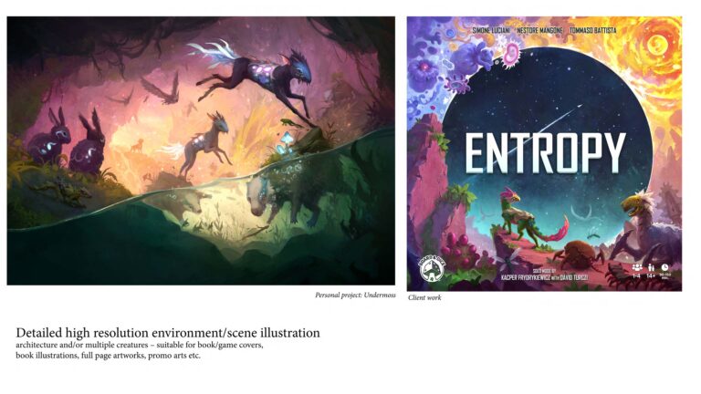 Poniżej znajdziesz moje portfolio przedstawiające część grafik, które wykonałem dla klientów lub na potrzeby własnych projektów. Jeśli uważasz, że mój styl może pasować do Twojej gry lub książki, koniecznie się ze mną skontaktuj, wysyłając e-mail na adres contact@piotrorleanski.com